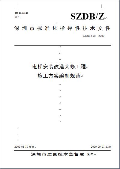 深圳《電梯安裝改造大修工程施工方案編制規(guī)范》