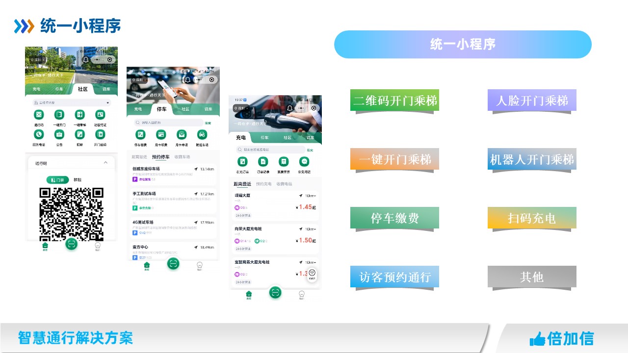 在住宅、寫字樓、酒店、醫院、學校等場景,實現一次授權發卡,可以通行所有門禁、閘機、電梯等設備。設備可脫機、可聯網,施工維保簡單。