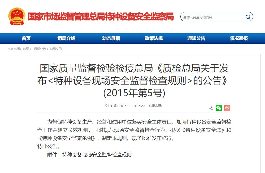 《特種設備現場安全監督檢查規則》質檢總局2015年第5號