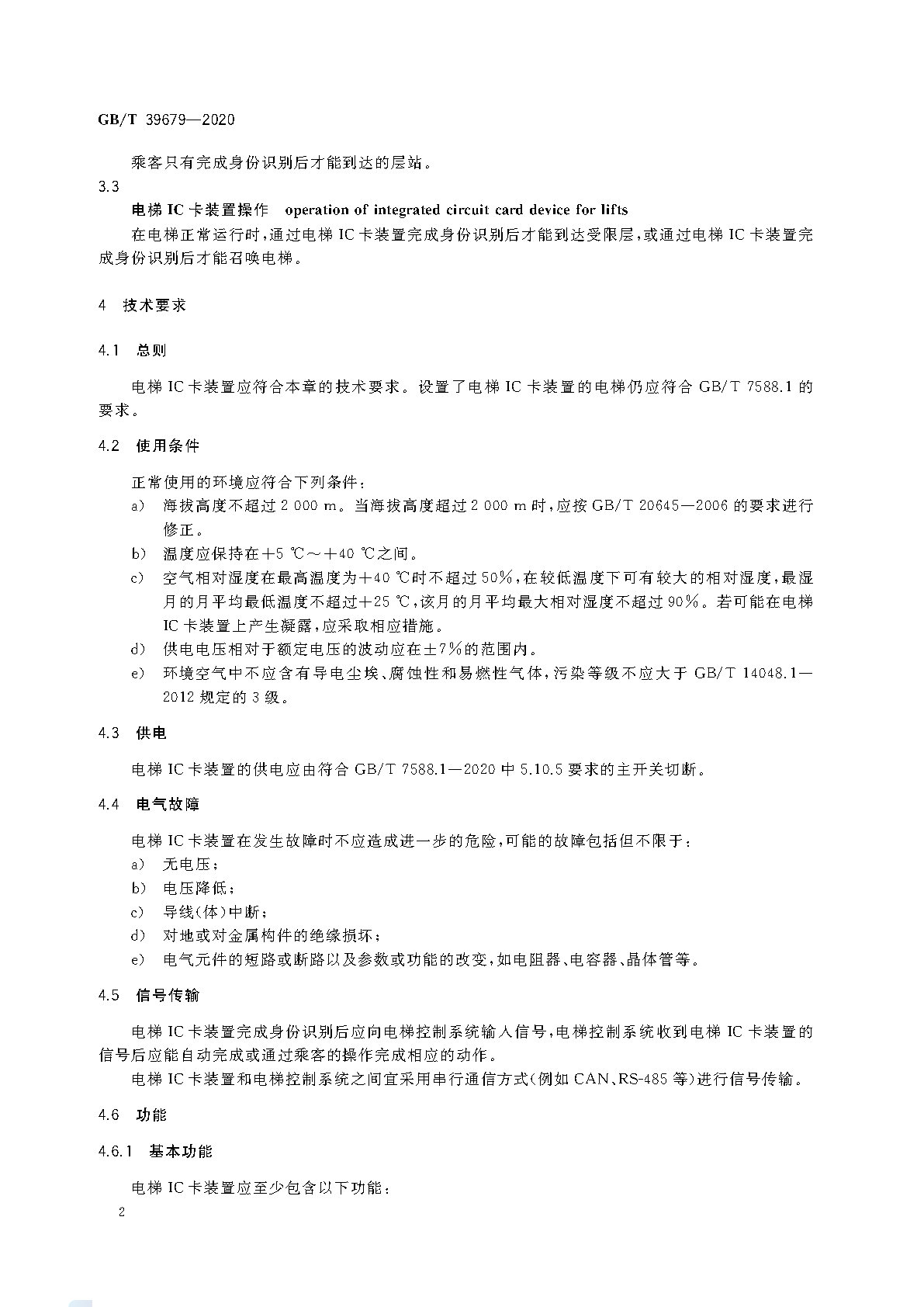 GB/T 39679-2020《電梯IC卡裝置》