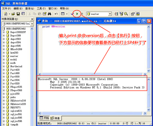 如何查看 SQL SERVER 2000 SP4補(bǔ)丁是否安裝?查看SQL安裝的版本方法?