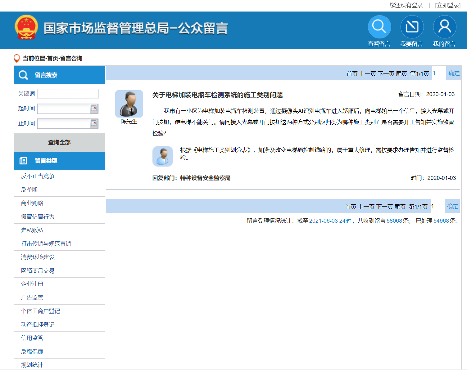 - 下一篇:通過按鍵方式加裝梯控,屬于一般修理,不需要監督檢驗 2021/6/4